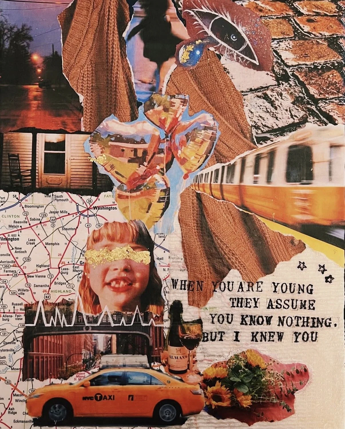 écoupage on 8x12” canvas inspired by Taylor Swift’s “cardigan”