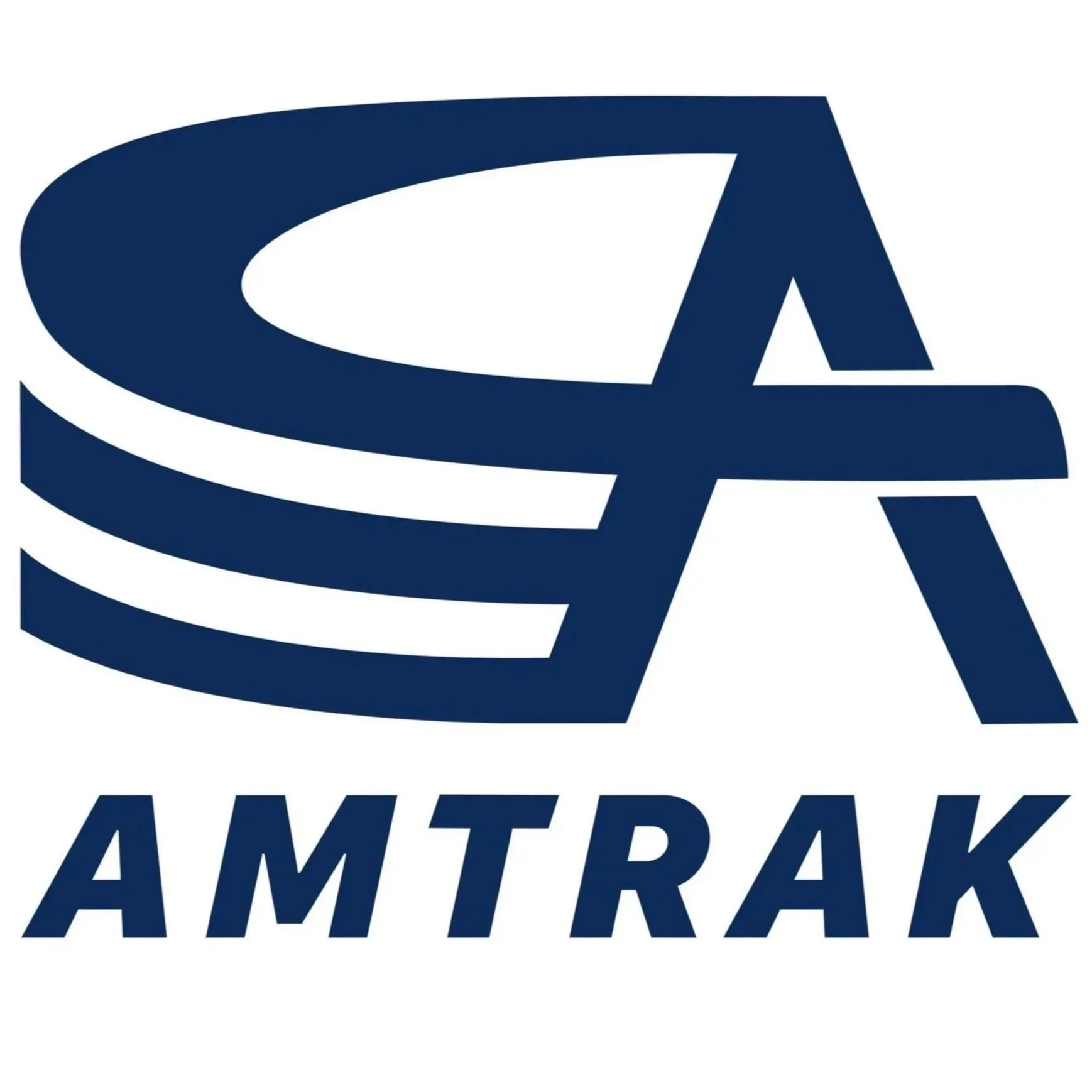 Amtrak’s logotype, pictured in Amtrak Navy, is set in a customized version of SF Pro Text Black Italic. The logotype is only to appear in one of two colors at any given time: Amtrak Navy when paired with the full color logomark, or Amtrak Sleeper Blue when paired with the Sleeper Blue logomark. The Amtrak logotype should never stand alone and should always accompany the logomark, either to its right or below it.