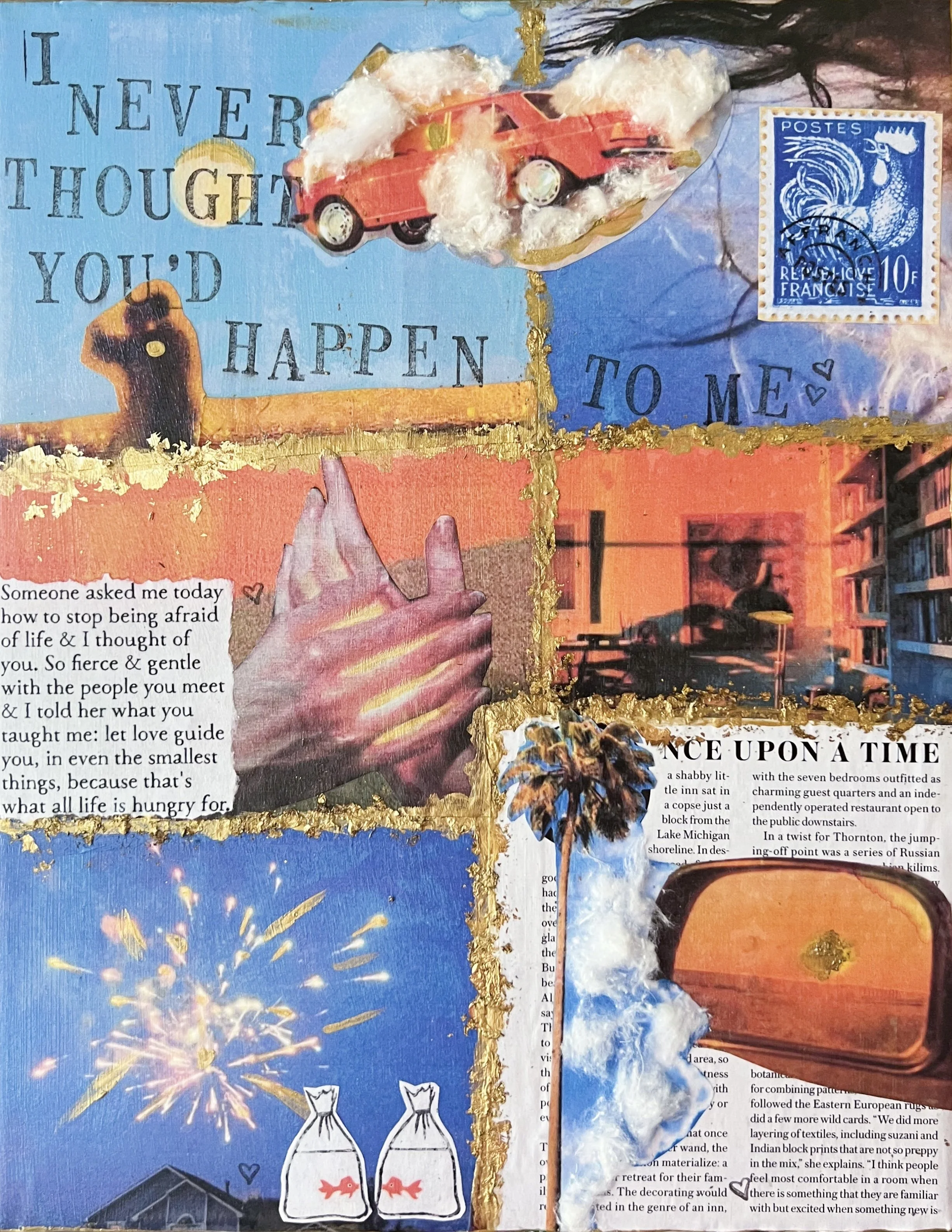 Custom commission. Découpage on 8x12” canvas inspired by boygenius’s “Leonard Cohen”