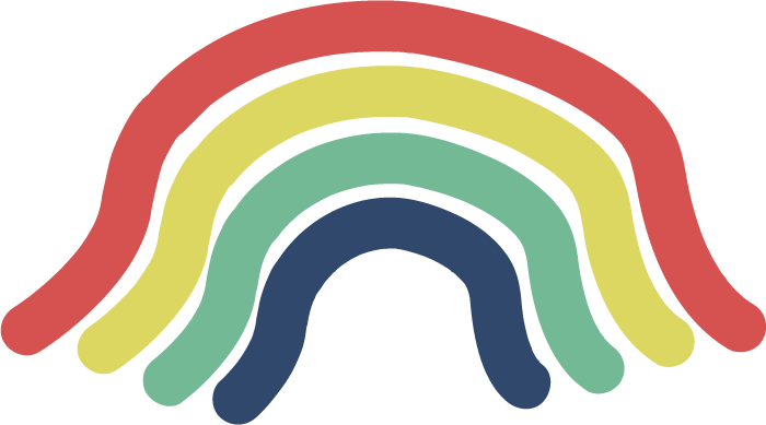 The shape of the rainbow derives from the shape of the dog’s belly in the logo lockup.